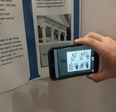 In a poster session at the end of the semester, students were able to show participants how their images helped them understand why these community events and locations chose them. They could also show participants how augmented reality technology could help others contribute to their own projects. Ulmer writes, “The conventions . . . offered here as prototypes for a learning practice that is to Electracy what the argumentative essay is to literacy. The relationship building the memorial to the essay is not one of opposition but of supplement. The MEmorial takes up where the conventional paper leaves off” (xxiii). Their projects could be adapted and utilized by other students, faculty, and community-based learning partners and were not just final papers used primarily for grading or for community-based learning assessments [Figure 6]